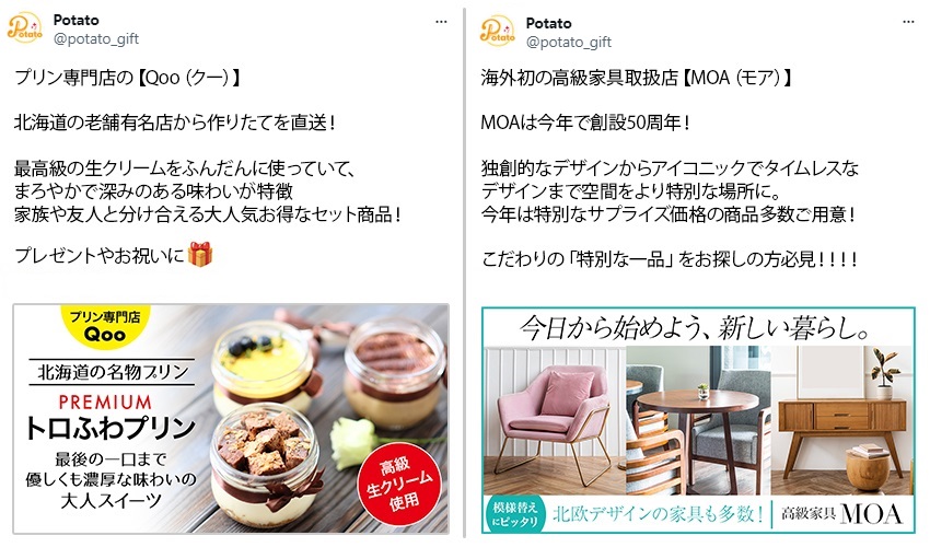 ・Potato掲載開始後にXプロモーション広告の投稿をいたします。